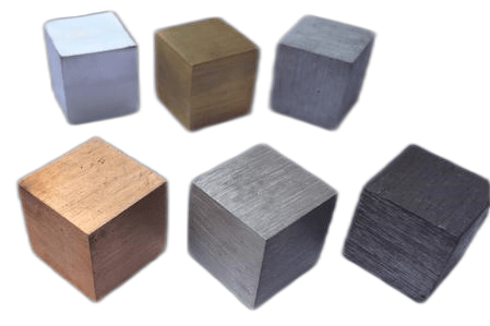 • Metals: Aluminum, brass, copper, steel, stainless steel, titanium, and other metals.